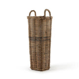 Rattan Umbrella Stand Introducing our Rattan Umbrella Stand, the perfect addition to any elegant home. Handcrafted with natural rattan, this stand adds a touch of sophistication to any entryway. Keep your umbrellas organized and your home looking luxurious with this timeless piece. Large - 11" W x 26" H (height with handles - 25") Due to baskets being handmade with natural materials, the size and colour of products may vary.