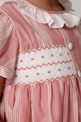 Designed in classic pink with white stripes, the Sidonie is a dress that will see your little ones through the seasons ahead in true style.