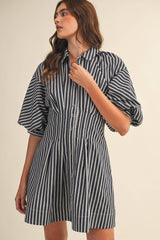 Striped Denim Bubble Sleeve Mini Dress