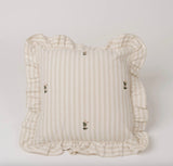 A uniquely designed pillow made from high quality 100% cotton. Featuring beige and cream stripes, a flirty ruffle, and French Knot embroidered flowers, this collection puts a twist on a traditional pattern.