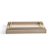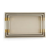 Taupe Decorative Rectangle Tray with Acrylic Handles - MDF/Vegan Leather