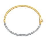 This reversible 7" bangle bracelet features textured 18kt yellow gold on one side, and pave cubic zirconia on the other. Crafted in .925 sterling silver and elegantly finished in pure platinum and 18kt yellow gold.