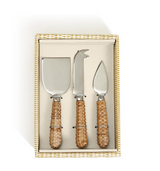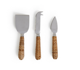 Any cheese lover or charcuterie preparer needs this set of 3 cheese serving knives. Each knife has a wonderful bamboo woven handle giving off such a great natural affect. Slice and serve only the best cheese with this great set