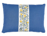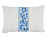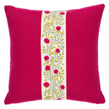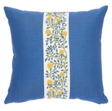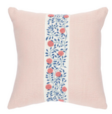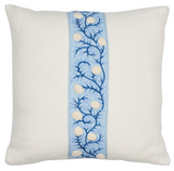 This pillow features Ashoka Tape with a Knife Edge finish. With a winding, embroidered floral design accentuated with French Knots, Ashoka Tape adds an element of handcrafted beauty. Body of pillow is Piet Performance Linen. Pillow includes a feather/down fill insert and hidden zipper closure.