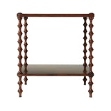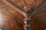 This beautiful walnut side table has a square top, rounded corners, and beautifully turned bobbin legs.