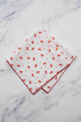 Cherry Blossom Square Scarf – 100% Cotton Add a pop of playful charm to your look with this sweet cherry-patterned square scarf. Made from 100% lightweight cotton, this approximately 17-inch scarf is soft, breathable, and perfect for all seasons. The vibrant red cherry and heart print, accented with delicate bows, brings a touch of whimsy to any outfit. Finished with neat red edges for a polished look, it’s ideal for wearing around the neck, as a hair accessory, or tied to your favorite bag.