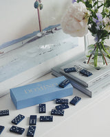Elevate your Domino set with a new aesthetic twist combining style and entertainment. Our Domino game includes 28 wooden game pieces and easy-to-read English, French, and German instructions. It is recommended for up to 6 players and ages 4+.