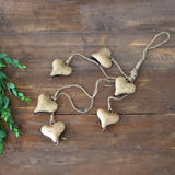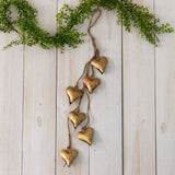 Beautiful cluster of heart-shaped iron bells on jute cord (31" long). Perfect romantic rustic décor for home, garden, weddings.