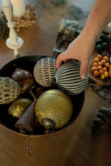 Boasting a vintage metallic finish and velvet ribbon loop, the Dew Drop Bauble Ornament brings a touch of nostalgic glamour to holiday trees. Embrace its classic aesthetic by mixing sizes for visual texture and use them as elegant accents in baskets, bowls, or as part of captivating tablescapes.