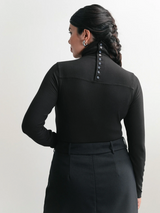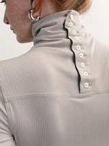 A turtleneck is a staple piece for a classic look, worn by itself or under any sweater or jacket. This one has interesting details such as a fine ribbed fabric and buttons up the back of the neck—yes, wear your hair up to show them! And remember, the little details of your life matter.