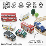 This wooden toy car set is a true classic and perfect for small-world play. Comprising 7 iconic London vehicles, including a double-decker bus, black taxi, fire engine, police van, ambulance and 2 sporty cars (compatible with our wooden train tracks). This amazing toy set inspires creative play for day-after-day play adventures. These chunky toys are highly durable and built to last and are great for encouraging social and imaginative play.
