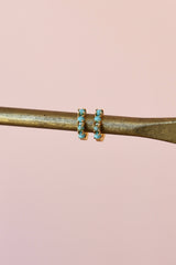 These Mini Turquoise Hoops are a simple and classic staple that add a sophisticated pop of color to your look with mini faux turquoise stones lining a gold huggie. This dainty piece can be mixed and matched with our other gold earrings to create your perfect stack.