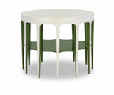 This feminine scalloped table will elevate any environment. Its unique size is suggested for an entryway or living space and will be a graceful edition to your home. The two-toned finish shows off the unique design of the table.