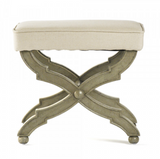 This single bench is the perfect size to bring about the exact amount of old world feel to any room. Add two in front of a hearth for extra seating, under a console table, or at the base of a bed to polish off your space. Created from faux olive green oak, and upholstered in an off-white linen.