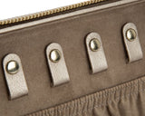 - Storage: 4 ring rolls, 1 earring tab, 4 necklace hooks, 3 storage compartments, under lid storage, mirror