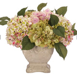 Embrace nature's charm with the green, pink Hydrangea, thoughtfully displayed in a pottery planter. With a height of 12", this arrangement offers a striking and elegant presence, blending seamlessly with seasonal or year-round decor. Experience the charm of this arrangement, maintenance-free and ideal for those who love fresh, vibrant decor.