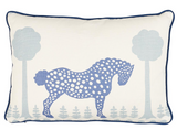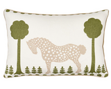 This pillow features Polka Dot Pony. Inspired by a midcentury pattern in our archive, Polka-Dot Pony in natural is a charming, whimsical design with modern appeal. Rows of stylized equine silhouettes create a large-scale stripe effect with the graphic simplicity and artisanal quality of a hand-printed textile. Pillow is finished with a welt in Cedric Cotton Lipcord. Welt contents: 48% fibranne, 36% cotton, 14% polyester and 2% nylon. Pillow includes a feather/down fill insert and hidden zipper closure.