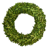 Immerse your surroundings in the timeless elegance of our 24-inch Preserved Boxwood Wreath. Crafted with genuine preserved boxwood leaves, this round wreath radiates a lush green hue, capturing the essence of nature's beauty. Its grand size is perfect for adorning spacious living areas, grand entryways, or as a statement piece above your fireplace. The intricate vine base lends a touch of rustic charm, ensuring its versatility in complementing various décor themes. From classic to contemporary settings, this wreath effortlessly enhances any space, offering countless decorative possibilities.