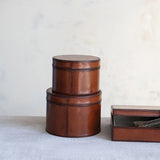 MDF & Leather Boxes w/ Stitching & Flocked Interior, Cognac Color, Velvet Interior