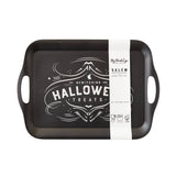 Bewitch trick or treaters when you serve them terrifying treats on this Halloween treats bamboo tray. This reusable tray has a vintage apothecary inspired design and is spooky addition to any Halloween decor! • 11.5" x 16.5" bamboo fiber tray with handles • Food safe • Dishwasher safe • Eco-friendly and sustainable • Do not microwave