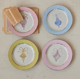 6" Round Stoneware Plate w/ Ornament Image & Silver Electroplated Edges, Multi Color, 4 Styles