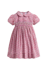 Inspired by Hans Christen Anderson’s fairytale of a tiny girl miraculously born into a flower, the Thumbelina dress is a ‘millefleur’ cotton, which literally translates as ‘thousand flowers’. It’s a guaranteed conversation-starter, imagination-igniter and twirl-inducer. Classic hand smocking is finished with intricate embroidered flowers on the chest. The Thumbelina has a signature Annafie silhouette with delicate puffed cap sleeves and a peter pan collar. Our dresses are lined in cotton to create a perfect flare for twirling and dancing like everybody’s watching. The Thumbelina has fabric covered buttons that fasten at the back and an attached sash tie at the waist (12 months+), which is a good test for the best bow-tier in the family. - 100% fine cotton - Machine washable at 30°C - Traditional hand smocking and embroidery -